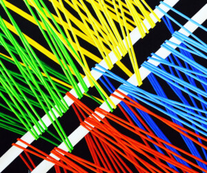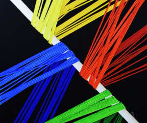 In the geometrical abstract series, Sharvari explores the identity of her art through color, balance and symmetry. Her architectural background is noticed in the dizzying compositions of her contemporary series. Using a strict geometric language, limited color palette yet consistent compositional format, she achieves a remarkable diversity within narrow framework. The bold and primary colors provide a rich contrast to the somber predominant blacks, greys and white and adds weight and movement to the paintings.