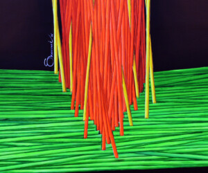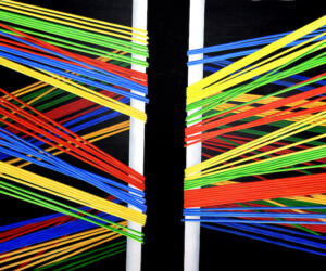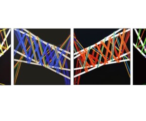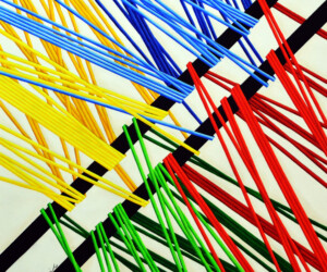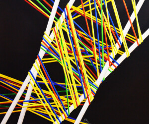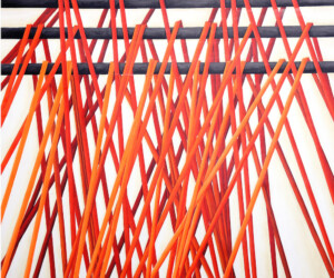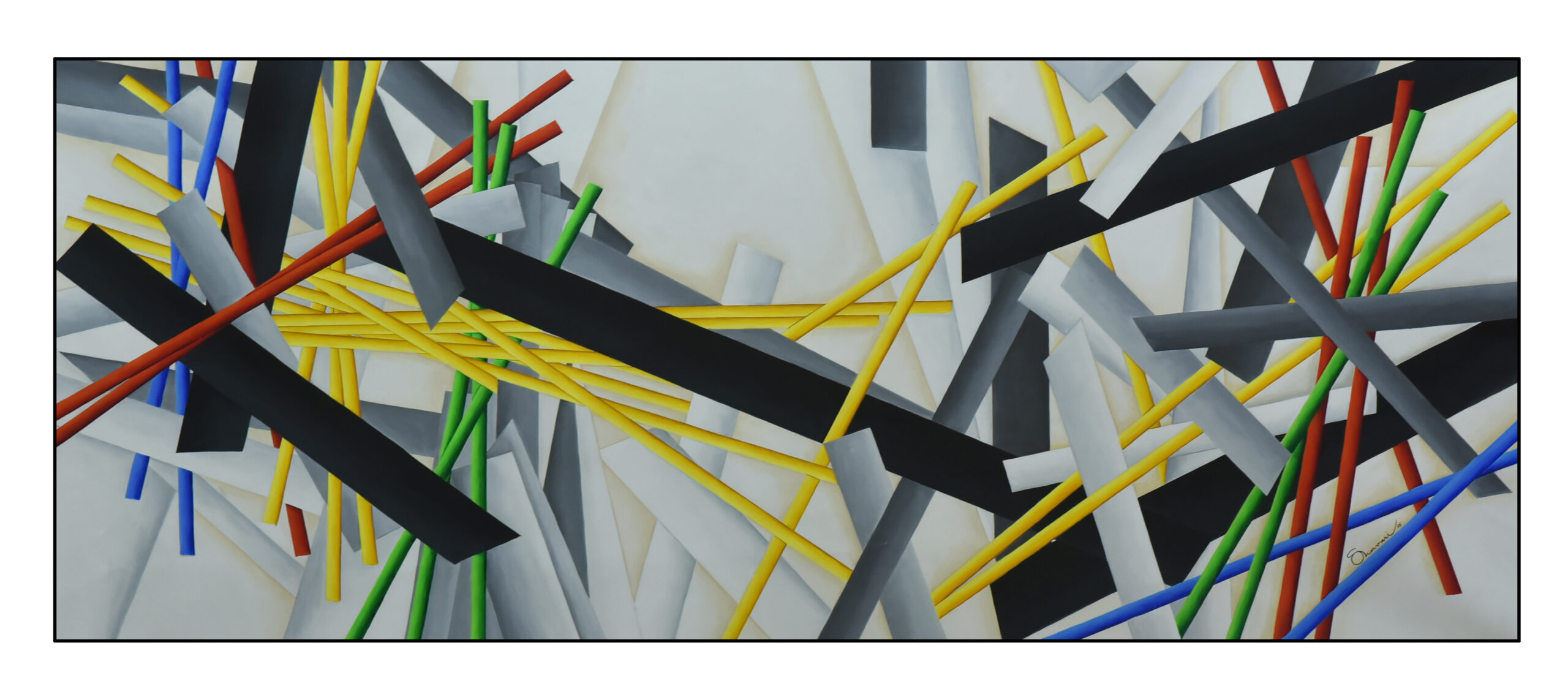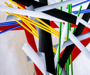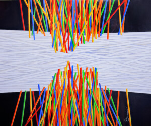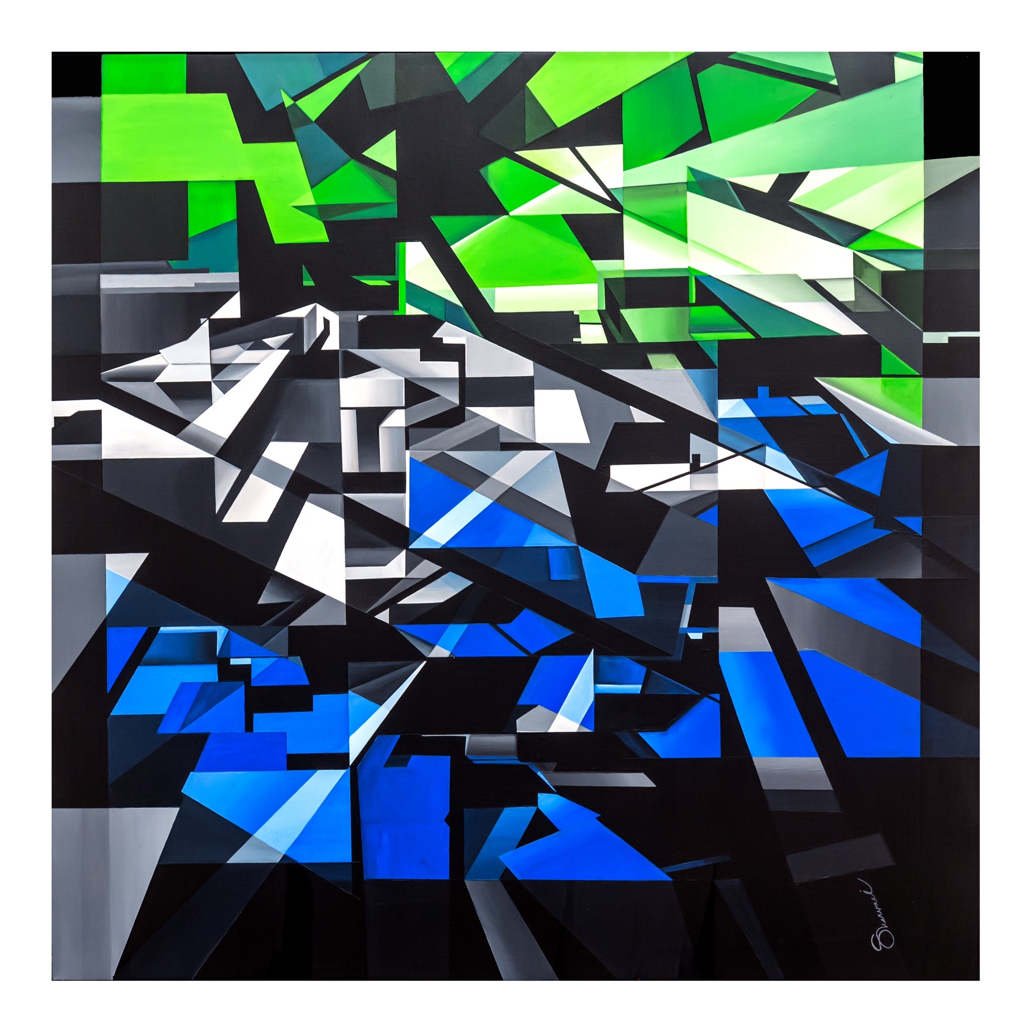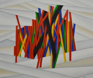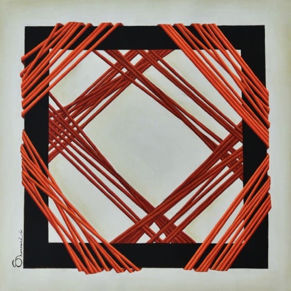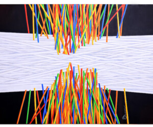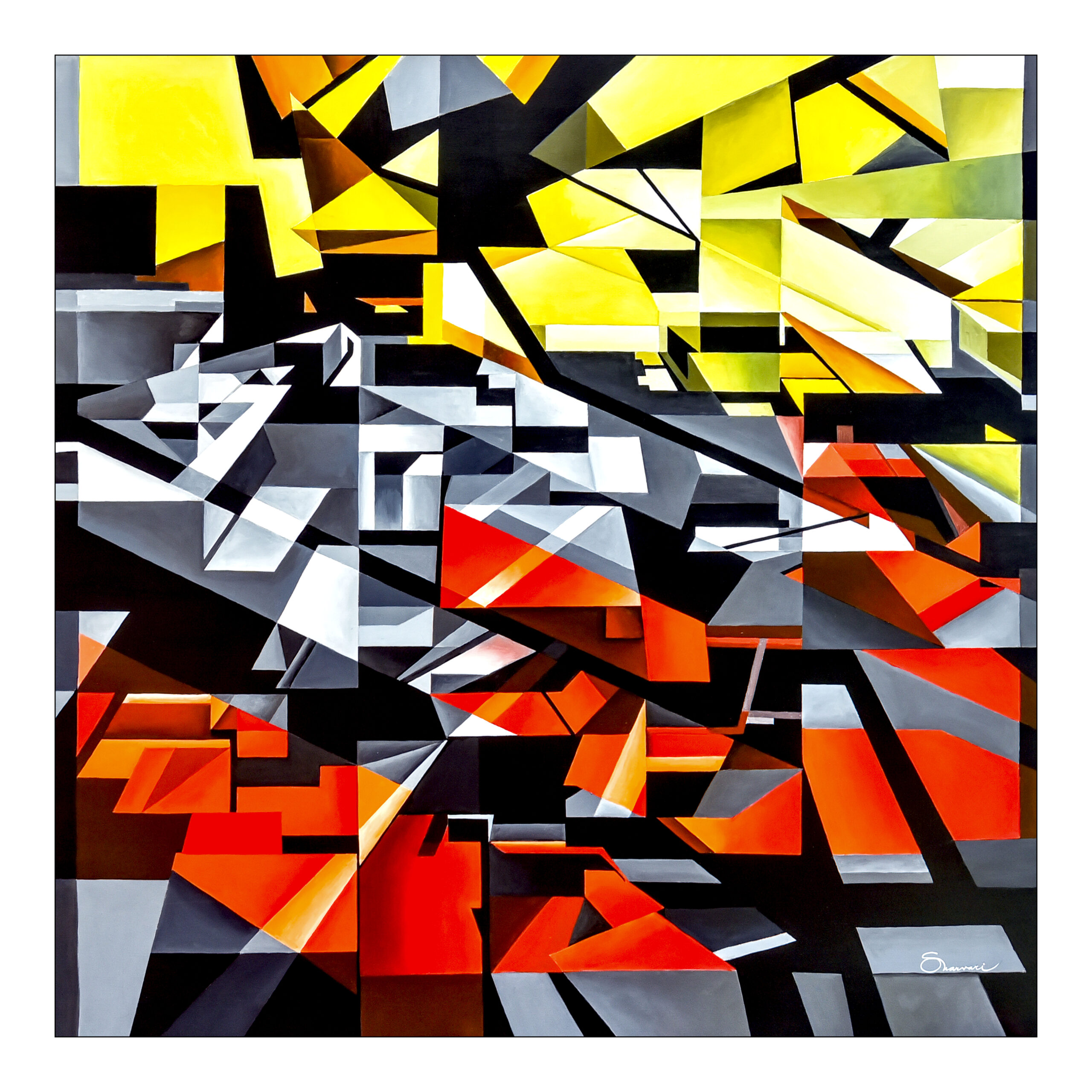 In the geometrical abstract series, Sharvari explores the identity of her art through color, balance and symmetry. Her architectural background is noticed in the dizzying compositions of her contemporary series. Using a strict geometric language, limited color palette yet consistent compositional format, she achieves a remarkable diversity within narrow framework. The bold and primary colors provide a rich contrast to the somber predominant blacks, greys and white and adds weight and movement to the paintings.
